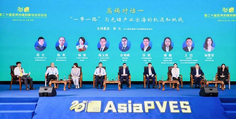 | 本文转自:人民网-安徽频道 9月24日至26日,第二十届亚洲光储创新论坛暨展览会在浙江杭州隆重召开,中环新能源控股集团于现场获颁多项荣誉,旗下中环低碳新能源(安徽)集团有限公司总裁邹珉应邀参会,并于高端对话环节作分享。  第二十届亚洲光储创新论坛暨展览会。 本届大会由绿色能源产业发展促进会主办,以“同筑零碳生态 共享绿色未来”为主题,邀请近100位政府相关部门负责人、行业专家及知名企业代表出席,分享零碳园区示范政策动态与实践进展,探讨国际合作机遇与市场竞争态势,研判全球产业发展方向与技术协同路径。  邹珉出席大会高端对话环节。 邹珉应邀出席“‘一带一路’与光储产业出海的机遇和挑战”主题高端对话环节。他介绍,中环新能源是新能源行业应用端的“老兵”,也是制造端的“新兵”。在余竹云董事长的引领下,公司自2013年,通过旗下产业园区安装光伏电站,大力推动光伏建筑一体化,从用户侧始,迈入光伏行业;近年来,公司重点聚焦海外市场开拓,以新技术、新产品的落地应用驱动破局,坚定不移走全球化发展道路。(中环宣 文/图)  邹珉在大会高端对话环节作分享。